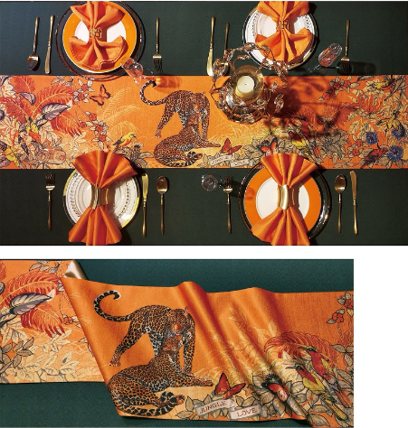 Table runners are often layered on top of a neutral tablecloth to create contrast and texture.