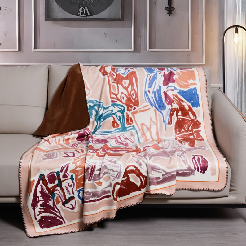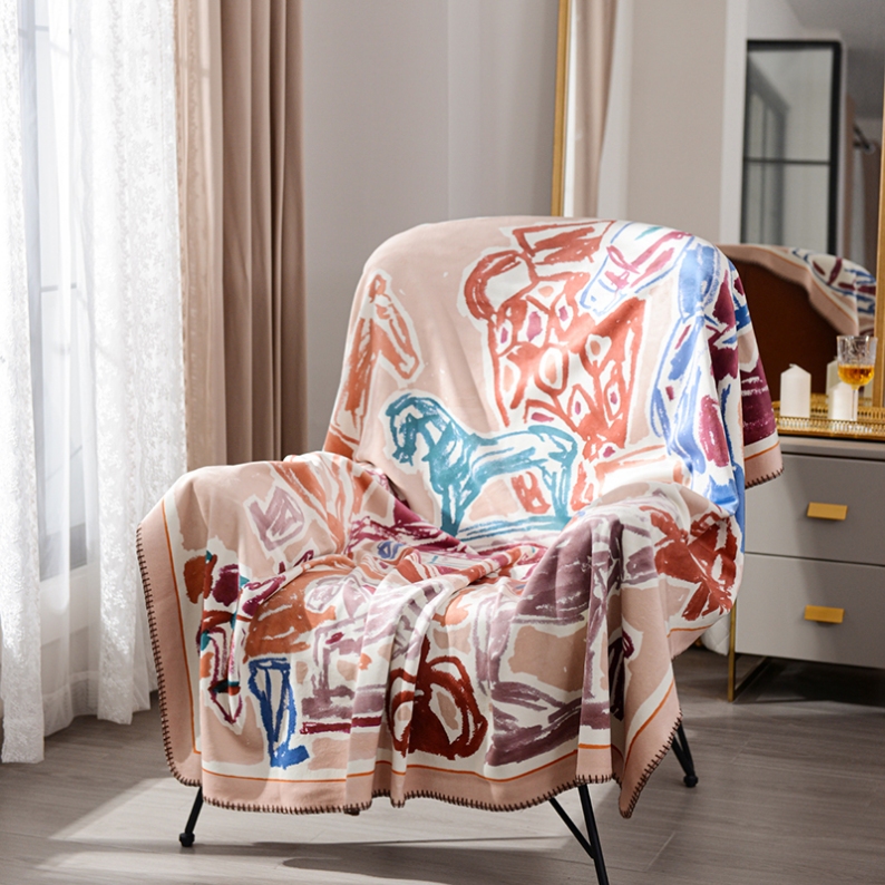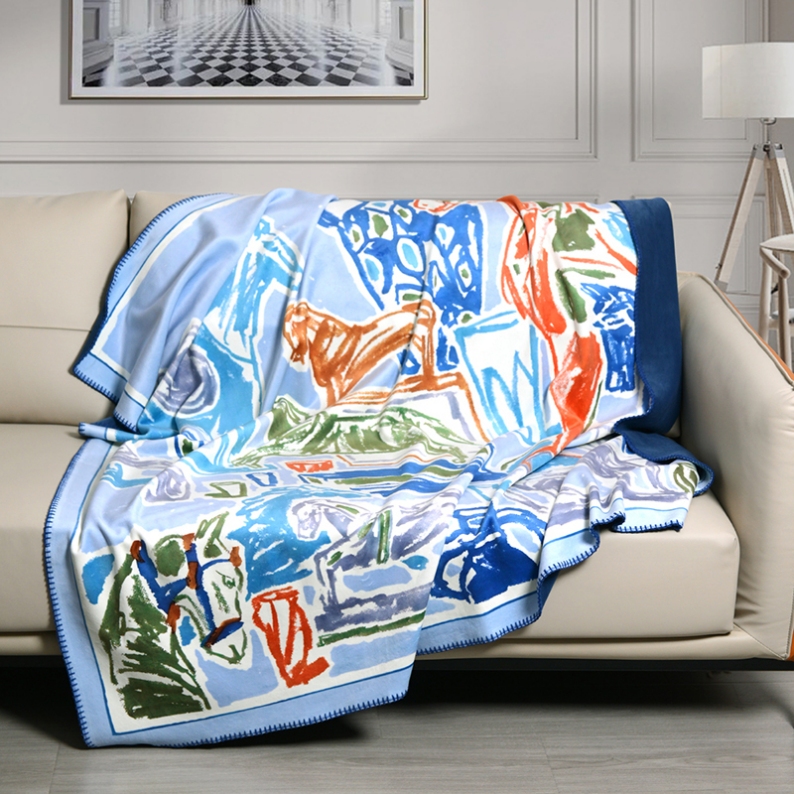 Description: This premium woven cotton blanket, crafted from meticulously spun colored yarn, features exquisite patterns reminiscent of oil paintings. Meticulously designed, the fluffy and soft yarn creates texture and layers, subtly concealing tender and intimate emotions within each strand.
