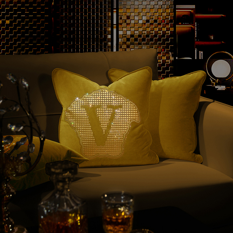 Perfect for premium home décor or gifts, this velvet pillow cover features sparkling rhinestones and optional custom sizing.