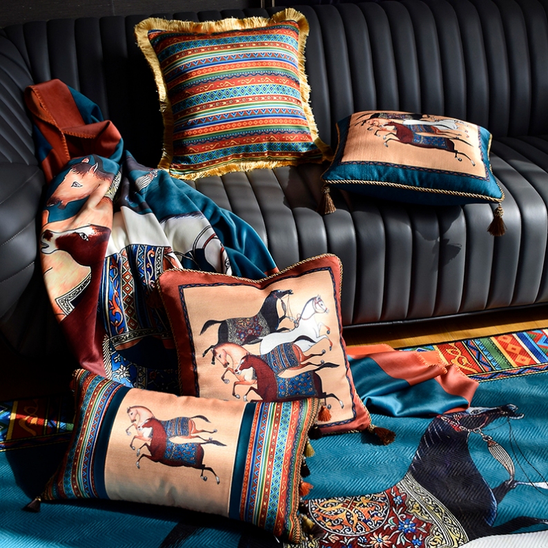 silk like printed throw pillowcase