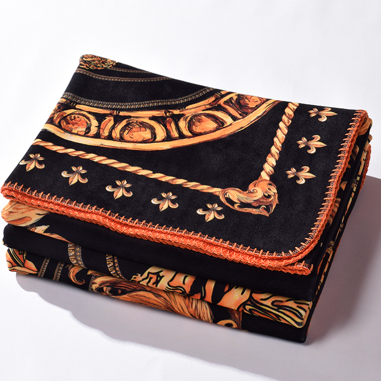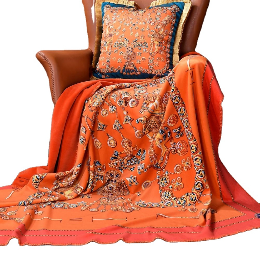 This luxurious printed woven throw blanket shows an classical art design, featuring rich colors and ornate details. Crafted from high-quality materials, it’s customizable in size, pattern, and color, making it perfect for premium residential, hospitality, and OEM projects.