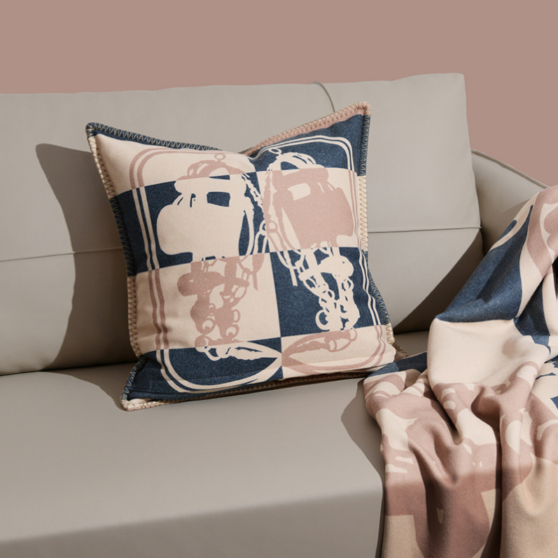This fleece pillow and throw set is designed for spaces that feel lived-in, warm, and effortless. The soft texture, combined with bold graphic patterns and blanket stitch edges, creates a relaxed yet refined look.
